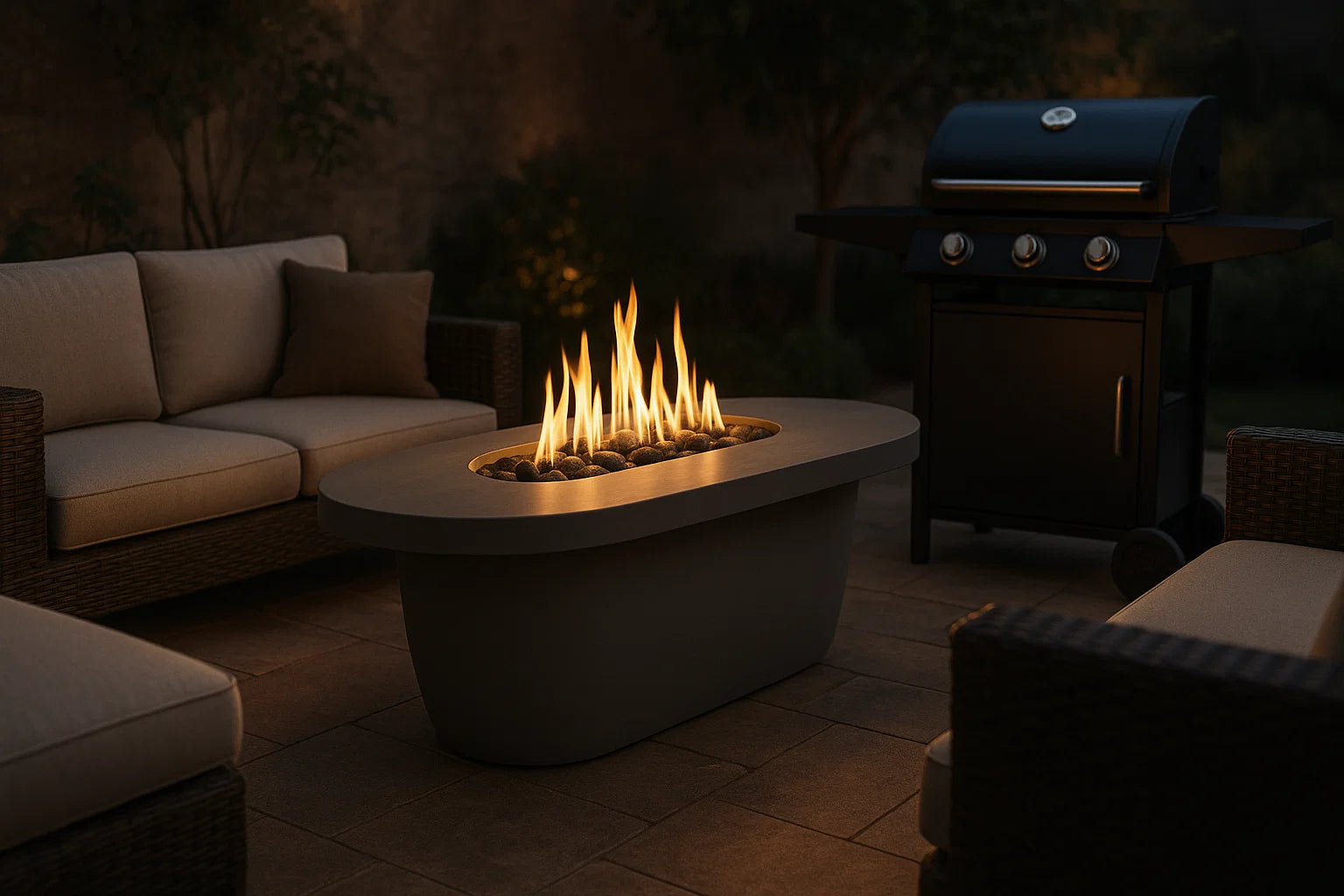 Add warmth, ambiance, and modern design to your backyard with fire features that elevate both comfort and conversation.